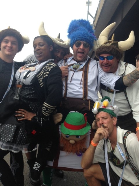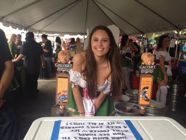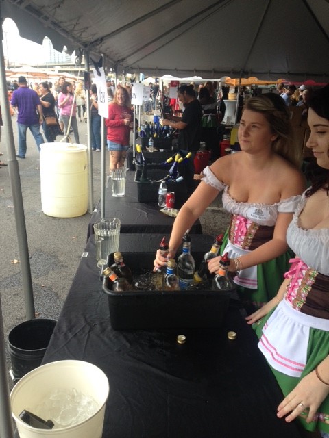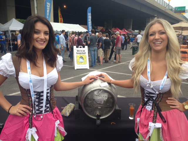 There were many goings-on in addition to the libations: bands and contests on the main stage, tricycle races, cornhole, various costumes, free food samples, and many hired ladies that added decor. Some of the ladies traveled considerable distances for the event; the two on either side of the cask below drove up from North Carolina.