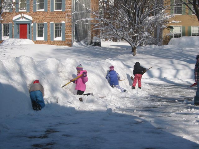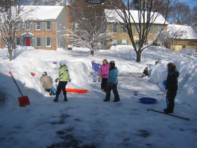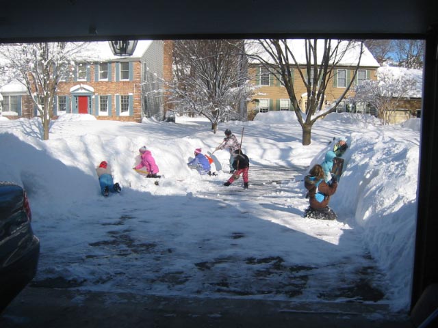 Saturday February 6. It snowed all night and much of the day, blanketing the neighborhood with well over 2 feet of snow. I went out to shovel the driveway and part of the deck (doggie bathroom). Bianca and Chloe offered to help. Now, when a couple of 9-year-old children offer to help with a difficult chore, be afraid. Be very, very afraid. In the 5 minutes they spent "shoveling" before they got bored and went to play in the yard, they were unable to remove any of the snow from the driveway due to the 5-foot snow walls on either side. However, they did manage to pack down quite a bit of snow, which made it necessary for me to scrape it from the pavement instead of simply scooping it up. Thanks, kids.