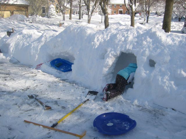 I spent a few hours clearing the newly fallen foot of snow from Traci's driveway and deck. It was not so much the shoveling of snow as the heaving it over the Great Walls that tired me out.