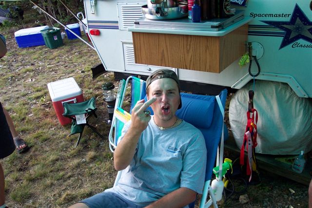 Most Known For - Wes's quick wit had us snickering all weekend. Although he and his "Bitch" Rich were quite the pair and kept us chuckling with their tete a' tete, Wes became most known for his initiation of the "Keg Row Shuttle". Throughout the weekend, Wes and his Jeep could be seen transporting several intoxicated, happily singing CRABSters (and/or coolers) to and fro.Quick Thinking - Wes was able to utilize his Jeep as the Getaway Vehicle for our CRABS forces retreating from the Taleballoon children.