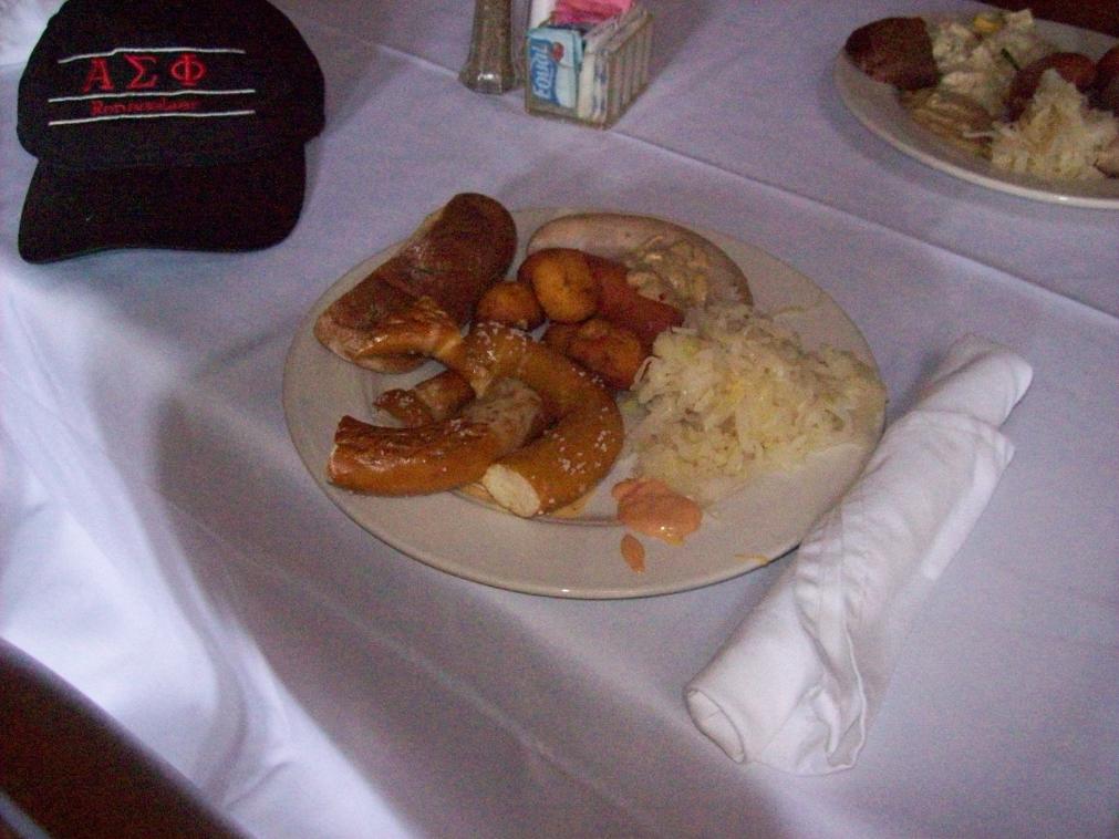 In the early evening Joel, Les and I had a few beers at Shart Central. Great Lakes Burning River Pale Ale was good. North Coast Old Rasputin Imperial Stout had a great aroma and a nice flavor. Samuel Adams Imperial Pilsner was nice and hoppy. We then grabbed our remaining beers and headed over to the Grand Banquet. We shared the beer while waiting in line. Stone Ruination IPA had a great hoppy aroma and flavor. Flying Dog Garde Dog, a biere de garde, was fairly good. Dogfish Head Aprihop was just okay. Clipper City Loose Cannon was nice as usual. Victory Weizenbock was nice and sweet and estery. Westmalle Dubbel was smooth and caramelly. Dogfish Head Olde School Barleywine was very sweet, like a mead. Clipper City Below Decks didn’t have much aroma or flavor. Dogfish Head Burton Baton Oak-Aged Imperial Pale Ale was good.