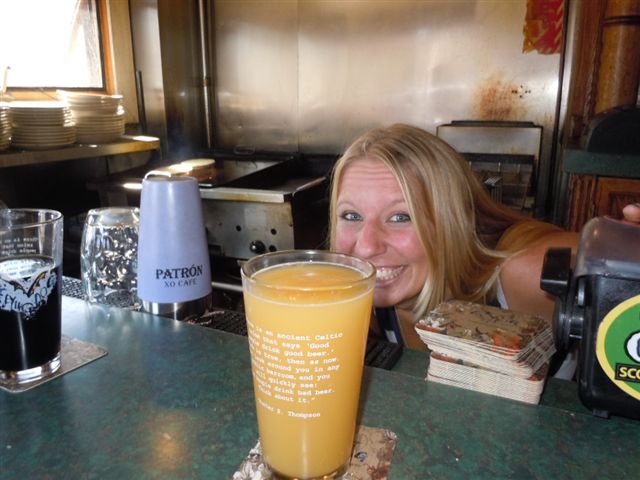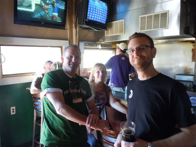 Dom then led us through the neighborhood, regaling us with stories of his childhood when he and various relatives lived here and he would sometimes walk into the local bars for nonalcoholic beverages. Eventually we arrived at the Knotty Pine where we enjoyed New Belgium Fat Tire and other quaffables both inside and outside.
