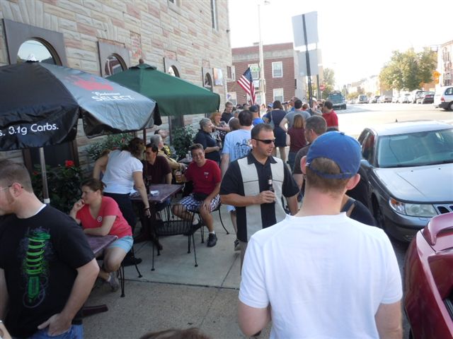 We then headed for Elliott's Pour House, the starting place for a pub crawl through Canton run by local beer enthusiast Dominic Cantalupo, who actually grew up in the area. Due to the previous events I was already buzzed and the pub crawl hadn't even started yet. When we got to Elliott's there were three customers. Once the pub crawlers arrived there were about 100 of us, many of us spilling out onto the sidewalk. It was a warm sunny day, and the bar got quite warm with all of us patrons.