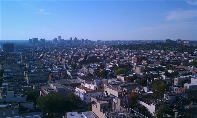 Next we walked to the National Bohemian building. Actually we didn't just go to it - we went to the top of it. Up there we got a great view of the surrounding area while Dominic told us interesting tidbits along with SPBW founder Joe Gold, former Baltimore Sun writer Rob Kasper, and liquor board chairman Steve Fogleman. National Bohemian was the first beer to be put into 6-packs (this was in the 1940s). National Bohemian is no longer brewed in Baltimore; it is now brewed by Miller in Eden NC, and distributed by Pabst.