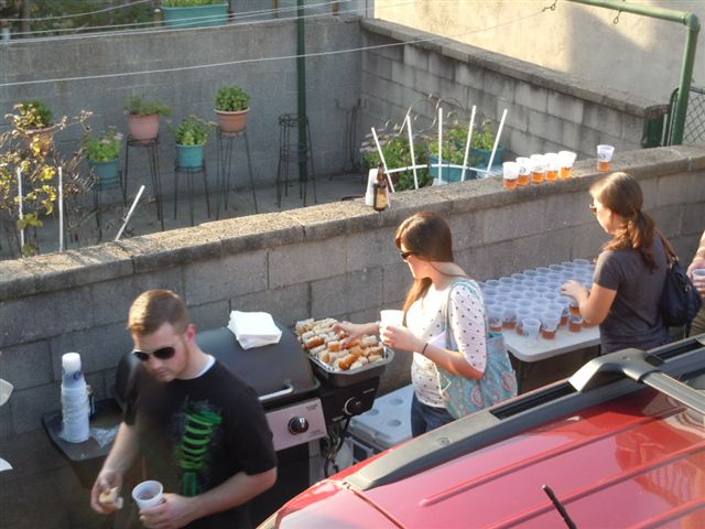 We stoppped in an alley for an unexpected treat: hot dogs and beer.