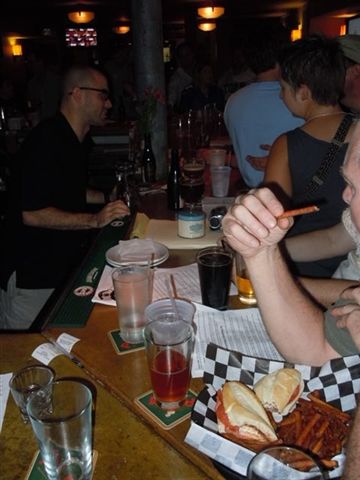 Final stop: Hudson Street Stackhouse. They had more than 35 beers from Dogfish Head, Heavy Seas, and Tröegs. We packed the place. I got to try two Tröegs beers: Flying Mouflan (a barleywine) and Java Head Stout.