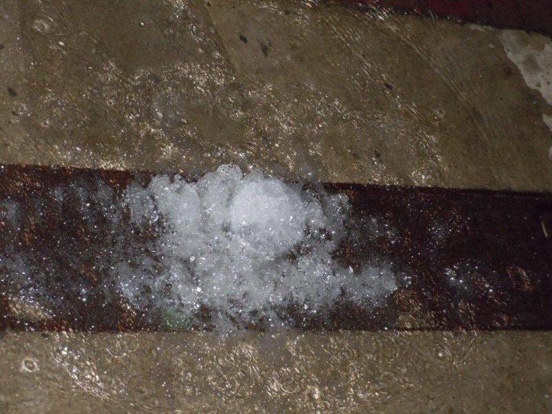 It rained for a while, and water bubbled up through the floor drain.