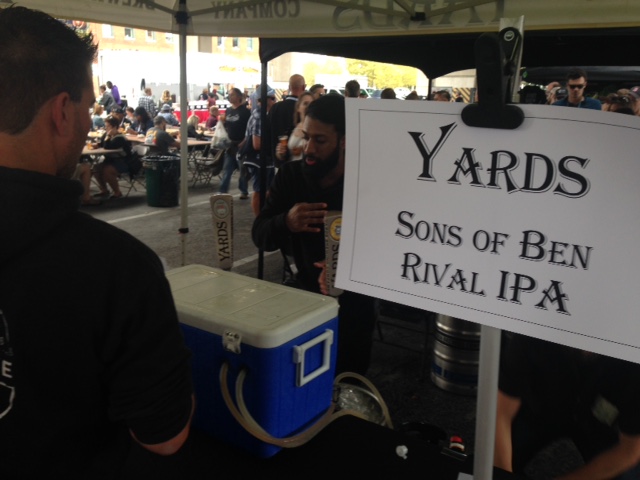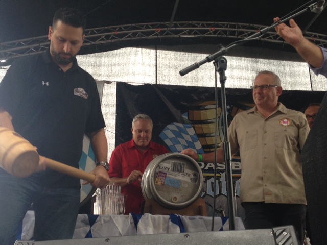 At about 2:30 a cask of Loose Cannon was tapped on the stage, which was fortunate since we missed the Opening Tap Ceremony that had happened a few hours earlier. Below left is a photo; below right is a video.