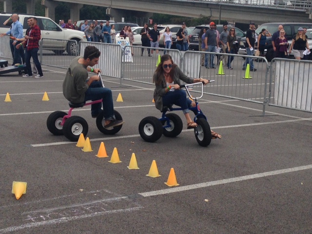 There were many goings-on in addition to the libations: bands and contests on the main stage, tricycle races, cornhole, various costumes, free food samples, and many hired ladies that added decor. Some of the ladies traveled considerable distances for the event; the two on either side of the cask below drove up from North Carolina.
