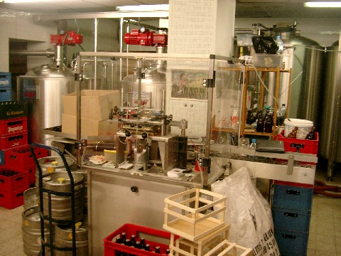 The boiling wort made the place smell great. I gave Jacques a couple of bottles of homebrew. Then he gave us a few bottles of his two newest beers (a white and an amber). He also showed us the 4th Chimay. (For those of you who don’t know, there are three commercial Chimay beers: Brune [red label], Tripel [white label], and Grande Reserve [blue label].) There is a Chimay beer that’s made especially for the monks. The bottle has a black label, which raises the question: why even have labels when the beer isn’t for sale? Jacques could not give me a bottle because he had only one, but he said that I’m not missing anything because it’s somewhat watery. According to him, Orval also has a monks-only beer.