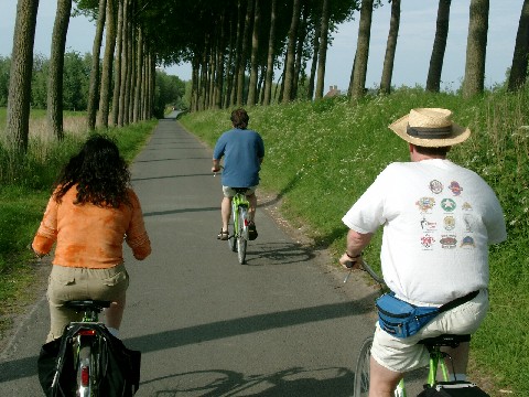 We rode our bikes northeast out of Brugge along the Noorweegse canal. Much of it was lined with big beautiful trees. The scenery was picturesque: farmland, pasture, buttercups, old windmills, and old quaint houses with beautiful hedges and gardens. There were also lots of horses, cows and sheep. I hadn’t seen so many farm animals since my last fraternity party.