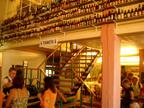 We rented bikes, which had one speed and no kickstand, and rode to the De Halve Maan brewpub. The place was packed. We sat outside in the beer garden with a couple from Barcelona and spoke Spanish with them. The pub served only one kind of beer outside: their Spring Brugs Lentebier (7%), on tap. It had medium body and was slightly sweet with some esters – tasty yet refreshing. Inside the bar they had hundreds of different beer bottles on shelves high on the wall, and most of them were full!