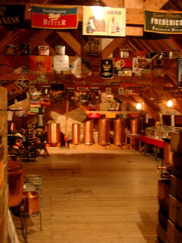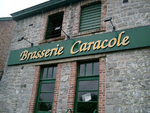 Next stop: Falmignoul. This town consisting of stone houses is home to Brasserie Caracole. We walked into the centuries-old, musty, stone-and-brick building to hear Def Leppard playing on a boombox. 1980s music seemed out of place in this building that looked more like a cave than a brewery. They weren’t offering beer samples, nor were they giving tours, but we were able to snoop around a bit and ask some questions. The brewery used to be called Brasserie Moussoux until sometime in the 1700s. All their equipment is more than 100 years old. This is the only brewery that still uses wood fire (they didn’t say whether it was the only one in Belgium or the only one in the world). In July and August they are open every day from 1-7 p.m., and as of September 2004 they are open every Saturday from 2-7 p.m. They make 4 kinds of beer, and of course we bought some of each. It was the best non-tour, non-tasting we ever had.
