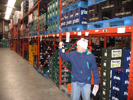 Tuesday the 8th. I paid $109 to fill the tank. The high price was due to the combination of gas costing $5 a gallon and the fact that the value of the U.S. dollar against the euro is going down faster than a crack whore on Marion Barry. We drove to Sint-Pieters-Leeuw in search of BVS. As usual we got lost and stopped for directions a few times. This always makes our travels an interesting challenge. Eventually we found it. It was beer heaven: hundreds of kinds of Belgian beer. They had many lambics and gueuzes, including the Oude Geuze 3 Fonteinen that I had enjoyed so much the night before. There is a small bar inside that apparently serves as a break room. We spent close to $500 on about 11 cases of beer, although we later discovered that they had accidentally overcharged us by about $70.