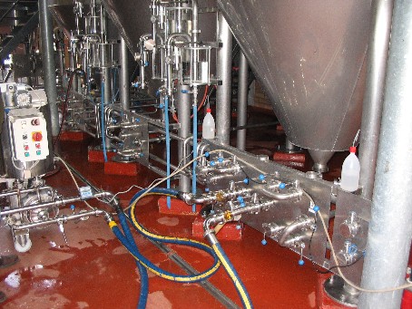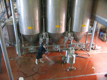This brewery makes many different beers. Some are its regular line, and others are contract brewed. Yearly output is 50,000 hectoliters (1.3 million gallons, or more than 400,000 barrels). The brewery was built in 1791. The owner is 6th generation. The brewing equipment is fairly new. Their ales are fermented at 18-20°C (64-68°F), lagers at 6-8°C (43-46°F). They will brew 3 batches of a particular beer, then mix them in order to get a more consistent product. They lager at 2°C (36°F). All their beers except Celis White are filtered. The Bornem Tripel and the pilsner contain 8% rice in order to achieve lighter color (and I thought only megabrewers did this).