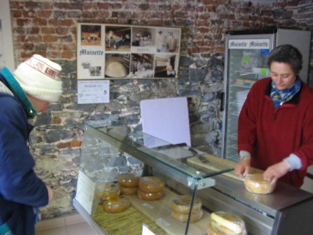 We crossed the invisible line that separates the Flemish north (Flanders) from the French south (Wallonia) and went to Brasserie Dupont. We had been there twice before, but we had to go again, not only because they make great beer, but also because I had recently found out that they make bread and cheese as well. How interesting that they never tried to sell us any. The bread, which is cooked on a wood fire, is sold only Thursday afternoon to Saturday morning, and today was Wednesday, but they sell cheese all the time, and we were allowed to taste it. They make three kinds, all with the word “Moinette” in the name, which is also in some of their beer names. The “young” cheese, called Moinette, was nice and smooth. The “old” cheese, called Moinette Vieux, was also nice and smooth, and not being a cheese connoisseur I can’t find words to describe the taste difference. Moinette au Malt et au Houblon, made with malt and hops, was more flavorful than the others and had a slight twang. We each bought some of this one. And of course we bought lots of beer.