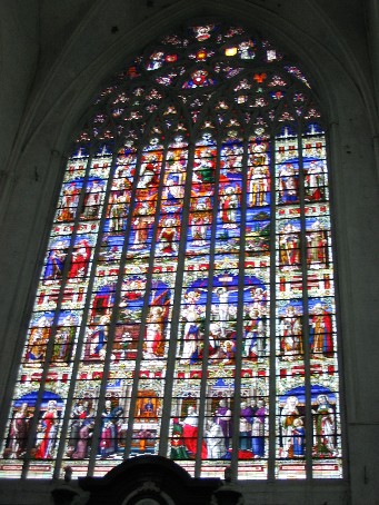 We went inside St. Rombout’s Cathedral. It looked very much like St. Michael’s in Brussels, with very high vaulted ceilings and beautiful, detailed stained glass windows. One window, from 1860, looked 3-D. I hit a few chocolate stores and then we drove to Kobbegem.