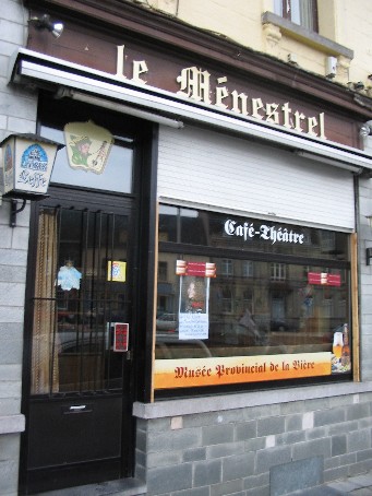 There’s a bar in downtown Péruwelz called La Ménestrel. It has lots of posters and pictures on the walls, and it appears that musicians play there at night. The bathroom was horribly scummy, and there was no soap or towels. After rinsing my hands with water I asked the bartender for a towel; he handed me a dirty bar rag. He did give me a bunch of coasters though. The menu had upwards of 70 beers, but the bar didn’t have them all. Like many other bars, the beer menu listed only the beer types, not the brewery names. For example, a menu might list a “Triple”. Well, there’s a big difference between, say, a Westmalle and a Deugnies, so one would be wise to ask which Triple they have before ordering one. Triple Toison D’Or (John Martin’s; 7%) was not to my liking. Kasteel Blond (Van Honsebrouck; 11%) had a nice sweet, estery aroma and flavor. There was some alcohol in the flavor but it did not taste like 11%. Bourgogne des Flandres (the back label was missing but the front label said, in tiny letters, Van Houtiyvek) was a yeastless beer with a fairly good malty/caramelly aroma and a decent caramelly flavor but not enough esters or hops.