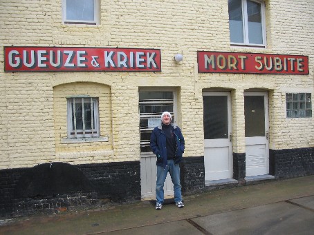 Onward to Kobbegem to find Mort Subite (used to be called De Keersmaeker) and a pub called Wit Paard. The highway signs said we had to head toward a town called Asse, which was very appropriate since Marty and I are always after asse. Anyway, Murphy’s Law prevailed: Mort Subite does not give tours, and the sign in Wit Paard’s window said that it’s open every day except Tuesday.