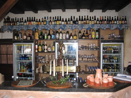 We had lunch at Buffet de la Gare in nearby Marbehan. It’s quite a fine establishment when you consider that it’s located at a train station. It had a good ambience and nice leather-bound menus. Rulles Triple (Artinasale de Rulles; 8.4%) had a nice malty, alcoholic, somewhat estery aroma and a nice estery, malty, alcoholic, earthy flavor. Certainly better than my “clone”. The food was quite good. After eating we talked with the bartender, Jean-Claude Carisse (not sure of the spelling), who told us of a new brewery called Millevertus that had been open for about a year. He gave us samples of two draught beers. Rulles Blond (Artinasale de Rulles; 7%), which we had had in bottle several times before, had a good estery aroma and a pretty good estery flavor. A good light beer. Diekirch (Diekirch; 5.2%), from Luxembourg, was a typical light, flavorless pils. We bought a bottle of something (I can’t remember what) to take with us, and he gave us two more bottles of other stuff.