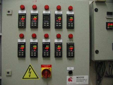 We got to tour the brewery. There are three 6800-liter lagering tanks. (All their beers are ales. “Lagering” in this context means that the fermented wort is held at a low temperature in order to accelerate the precipitation of wort solids.) All brewing is controlled by a panel of buttons. They brew every week, use steam heat, add candi sugar to the boiling wort for color, and aerate with pure oxygen. The wort is 17-18°C (63-64°F) at pitching time. Primary fermentation lasts 6-12 days. Bottling is done at the Affligem brewery 5 miles away; the fermented wort is trucked there in a movable tank. Affligem also bottles for Moortgat and Palm.