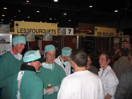 Inside, many hundreds of happy drinkers were enjoying about 150 kinds of beer from 50 breweries. Many were bottled and many were kegged. A group of young guys were dressed in hospital scrubs, as though it were Halloween. There were many Americans too. Several of the attendees were homebrewers, including two from BURP, which is one of my homebrew clubs. The beer samples were 15 cl (5 ozs) each, and Marty and I split them in order to maximize the number of beers we could taste before experiencing liver failure.