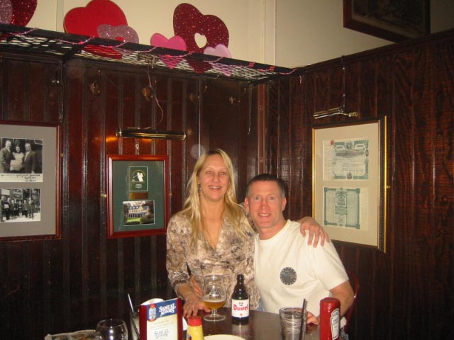 We arrived in my hometown of Newton on Thursday, Valentine's Day. Trixie took me out that night for a surprise dinner in Boston. We spared no expense in sharing this romantic holiday - we took the subway. It smelled just like I remember it from my youth: a mixture of B.O. and rotting corpses. In fact, the Boston subway is very much like the New York subway, except in New York they at least make an attempt to remove the stabbing victims. Boston calls their subway the T, which I think stands for "trash". Anyway, she took me to Jacob Wirth's, a restaurant with a good beer selection, including several Belgians. The place has a nice wood interior (heh heh, I said "wood"). There were many couples celebrating Valentine's Day, except at the bar there were three guys sitting together. I heard one of them say, "For Valentine's Day I'm going to buy my wife a fur coat and a diamond ring. This way if she doesn't like the fur coat she'll still love me because she got a diamond ring." The second guy said, "For Valentine's Day I'm going to buy my wife a designer dress and a gold bracelet. This way if she doesn't like the dress she will still love me because she got a gold bracelet." The third guy said, "I'm getting my wife a T-shirt and a vibrator. That way if she doesn't like the T-shirt she can go fuck herself."