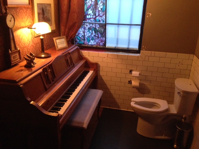 There was a piano in the restroom, I suppose so people could crap in D minor. Maybe that's what Beethoven's movements were all about.