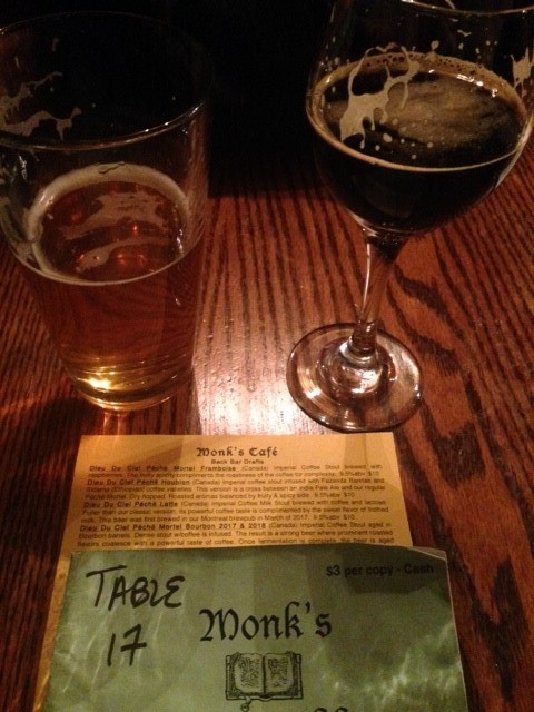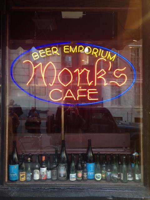 The passengers on the sold-out bus shared food and beer until we arrived at Monk's Café in downtown Philadelphia. They opened a half hour early for us, and we proceeded to take the place over. They had about 30 beers on draft and hundreds in bottles from all over the world, with a heavy emphasis on Belgium. Two events were being celebrated that day.