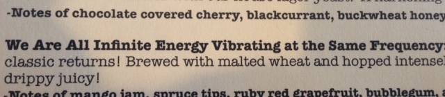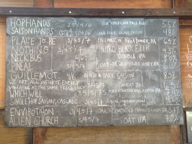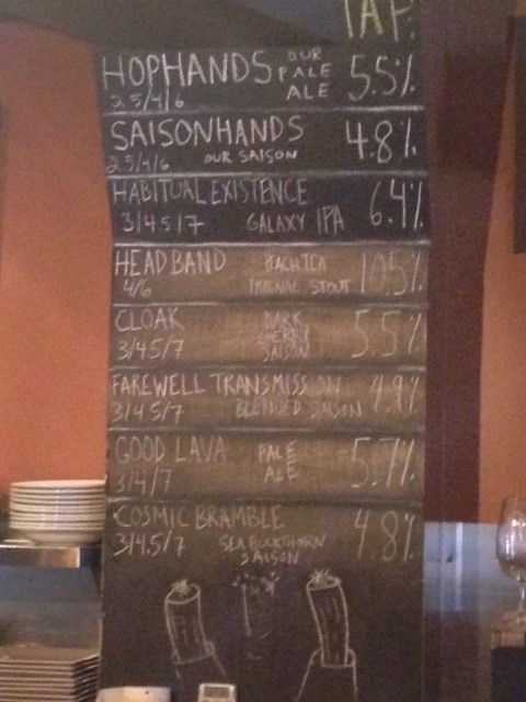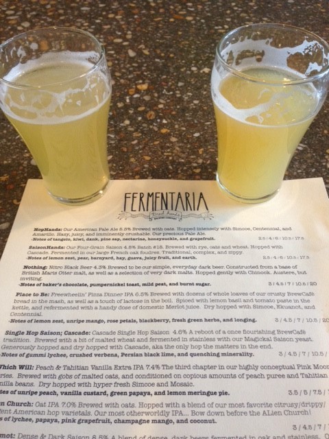 My friend Sean and I went into the Fermentaria and talked to a couple at the bar who, luckily for us, were just about to leave. We commandeered their seats and ordered 4-ounce samples of: